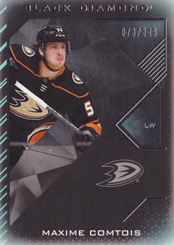 The Max Comtois 2021 Upper Deck Black Diamond #BDB-MC Base /349 card is 1 of 6 Max Comtois' card variations in the 2021 Upper Deck Black Diamond set being tracked by Sports Card Investor, including Pure Black /50, Diamond Relics /5, Diamond Relics Pure Black /1, Sparkling Scripts, and Sparkling Scripts - Spectrum /25.