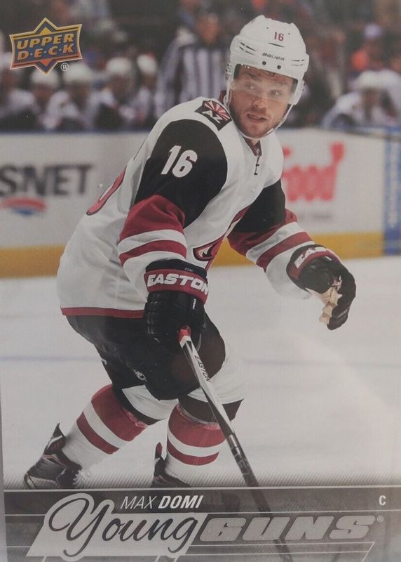 The Max Domi 2015 Upper Deck #204 Young Guns - Jumbo Rookie card in Raw condition has not changed in price in the last 30 days and was last sold for $2.61 .