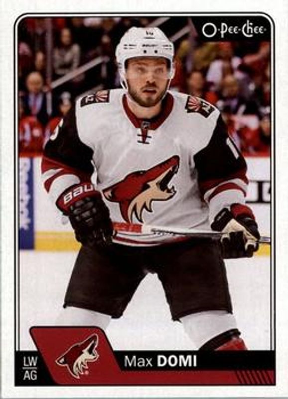 The Max Domi 2016 O-Pee-Chee #31 Base card is 1 of 8 Max Domi's card variations in the 2016 O-Pee-Chee set being tracked by Sports Card Investor, including Rainbow Foil, Retro, Retro Blank Back, Black Rainbow Foil /100, and Glo-Pee-Chee.