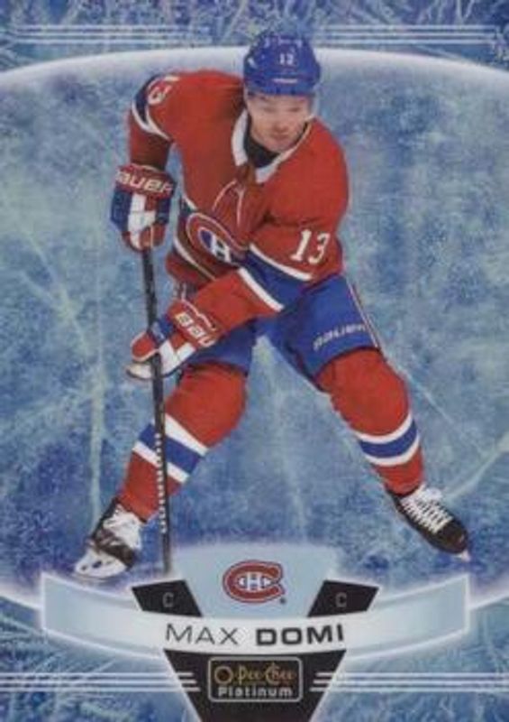 The Max Domi 2019 O-Pee-Chee Platinum #132 Arctic Freeze /99 card is 1 of 12 Max Domi's card variations in the 2019 O-Pee-Chee Platinum set being tracked by Sports Card Investor, including Base, Matte Pink, Rainbow, Sunset, and Violet Pixels /399.