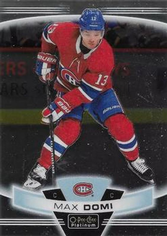 The Max Domi 2019 O-Pee-Chee Platinum #132 Base card is 1 of 12 Max Domi's card variations in the 2019 O-Pee-Chee Platinum set being tracked by Sports Card Investor, including Matte Pink, Rainbow, Sunset, Violet Pixels /399, and Red Prism /199.