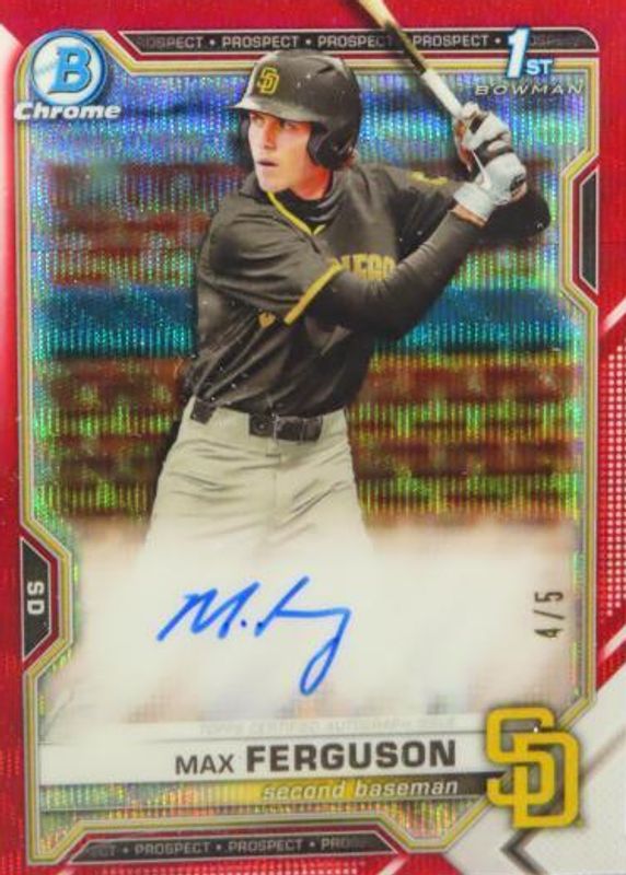 Max Ferguson 2021 Bowman Draft #CDA-MF Chrome DP Auto - Red Wave Refractor /5 (1st) RAW Price Guide