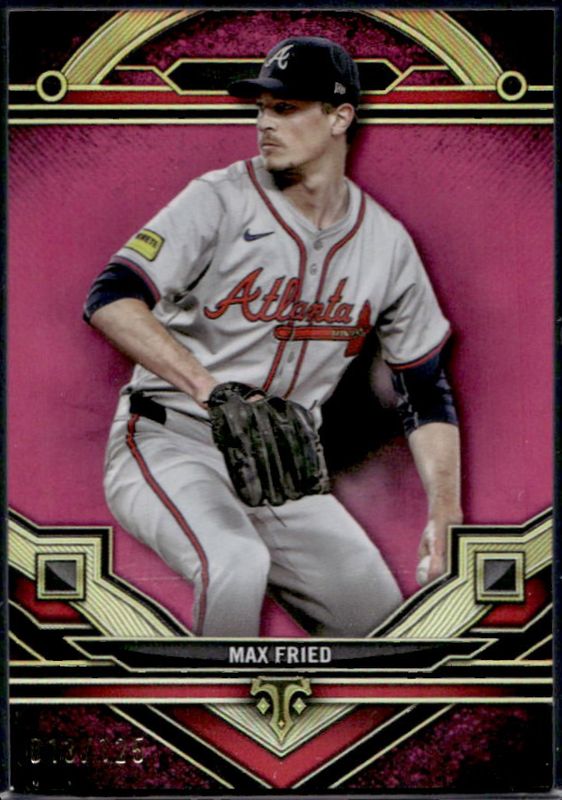 The Max Fried 2024 Topps Triple Threads #146 Tourmaline /125 card is 1 of 35 Max Fried's card variations in the 2024 Topps Triple Threads set being tracked by Sports Card Investor, including Base, Amber /199, Aquamarine /149, Gold /99, and Citrine /75.