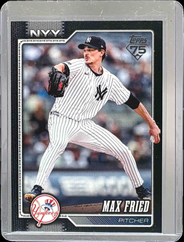 The Max Fried 2026 Topps #270 Black Border /75 card is 1 of 72 Max Fried's card variations in the 2026 Topps set being tracked by Sports Card Investor, including Base, Aqua Holo Foil, Aqua Rainbow Foil, Diamante Foil, and Holo Foil.