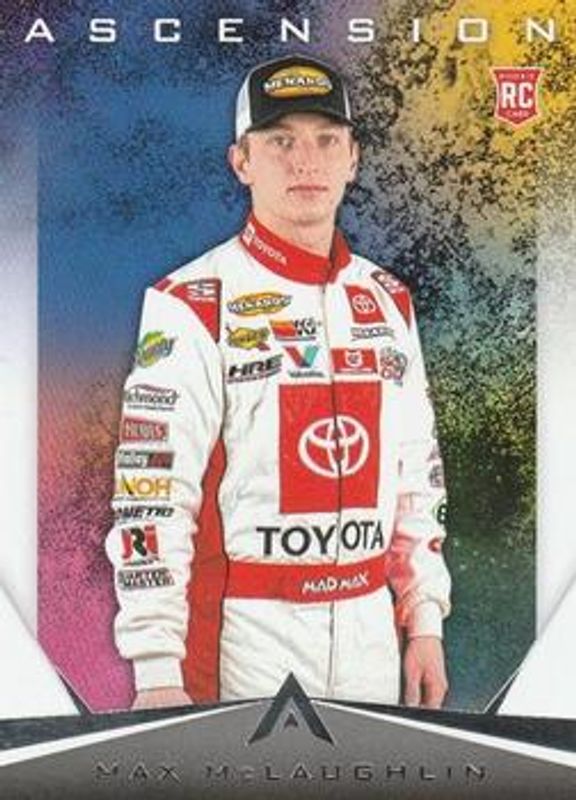 The Max McLaughlin 2020 Chronicles NASCAR #12 Ascension card is 1 of 36 Max McLaughlin's card variations in the 2020 Chronicles NASCAR set being tracked by Sports Card Investor, including Crusade, Crusade Holo, Score, Spectra, and Ascension Autographs /199.