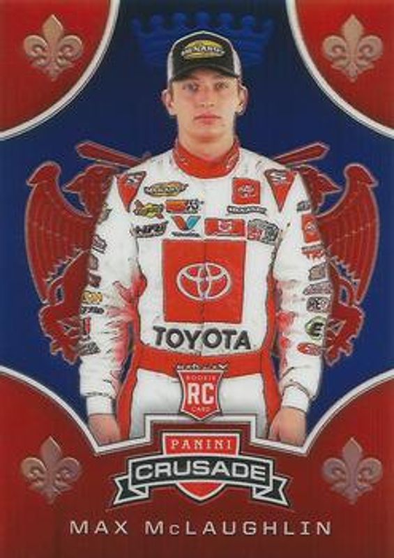The Max McLaughlin 2020 Chronicles NASCAR #6 Crusade Blue /199 card is 1 of 36 Max McLaughlin's card variations in the 2020 Chronicles NASCAR set being tracked by Sports Card Investor, including Ascension, Crusade, Crusade Holo, Score, and Spectra.