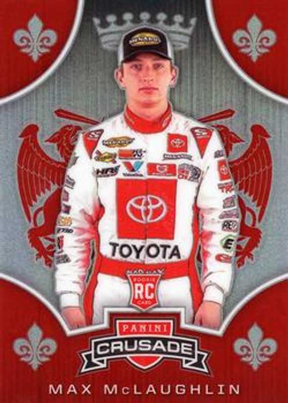 The Max McLaughlin 2020 Chronicles NASCAR #6 Crusade Holo card is 1 of 36 Max McLaughlin's card variations in the 2020 Chronicles NASCAR set being tracked by Sports Card Investor, including Ascension, Crusade, Score, Spectra, and Ascension Autographs /199.
