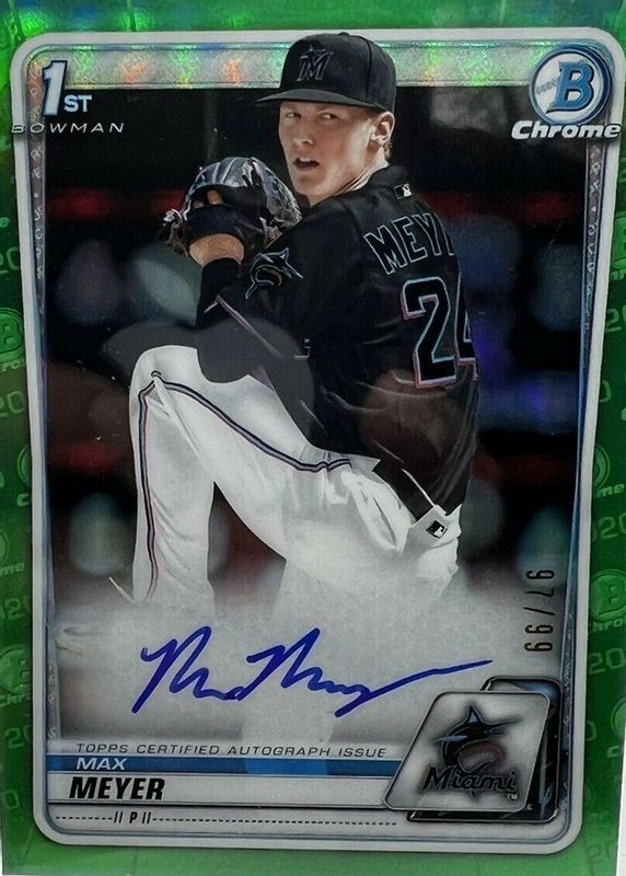 2020 Bowman Draft Max Meyer Chrome Auto Refractor Green #67/99 Marlins