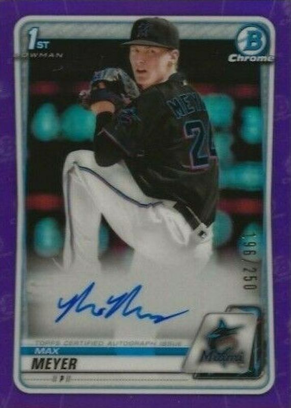 Max Meyer 2020 Bowman Chrome 1st Auto Purple Refractor /250 Marlins