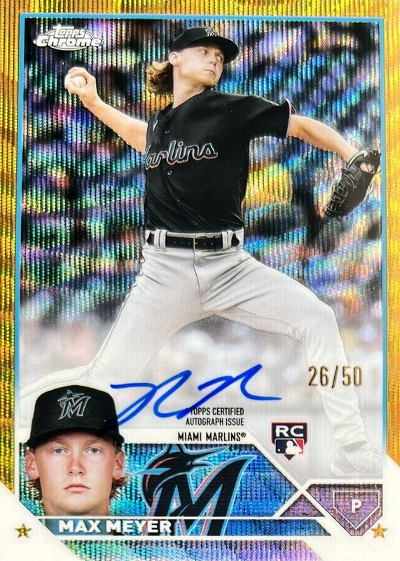 Best Prices Available For Sale of Max Meyer 2023 Topps Chrome #RA-MME Rookie Autographs - Gold Wave Refractor /50