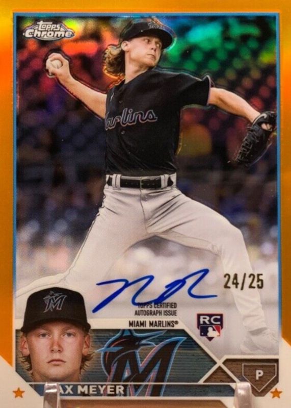 2023 Topps Chrome Max Meyer Orange Refractor Auto /25 Rookie RC Marlins SSP