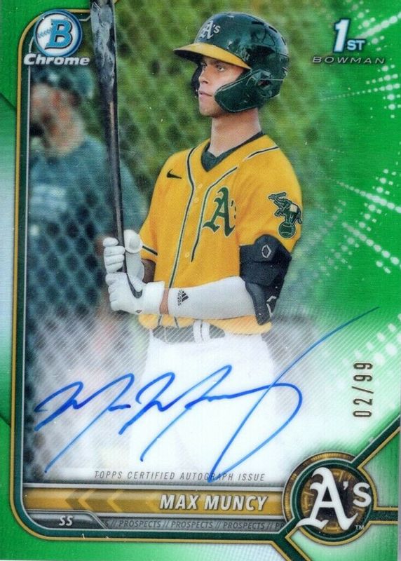 Max Muncy (Athletics) 2022 Bowman #CPA-MMU Chrome Prospect Auto - Green Refractor /99 (1st) RAW Price Guide
