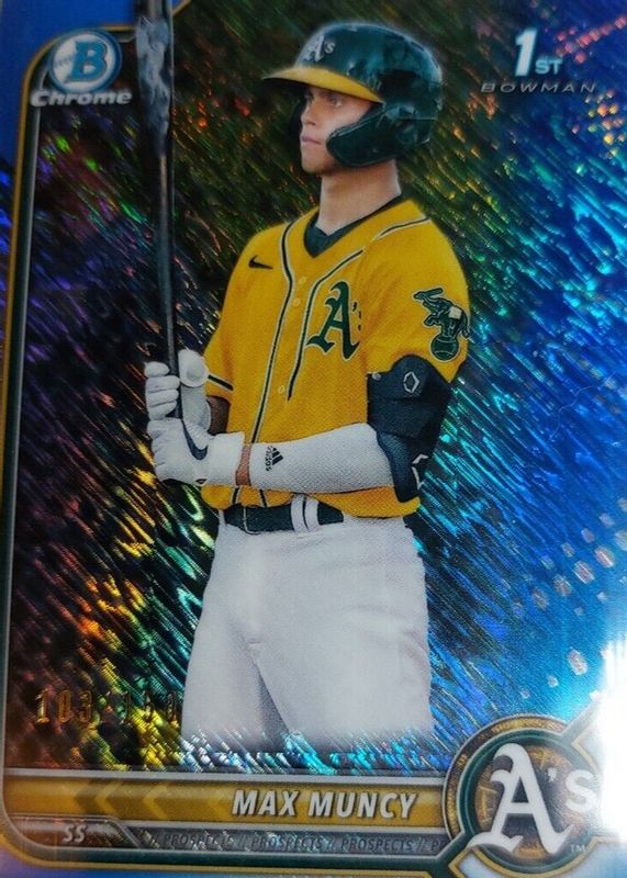Max Muncy A’s 2022 Bowman Chrome 1st Prospect Blue Shimmer Refractor 136/150