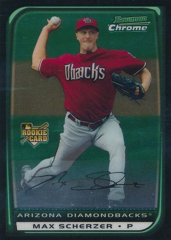 The Max Scherzer 2008 Bowman Draft Picks & Prospects #BDP33 Chrome Rookie card in Raw condition has moved up $5.50 (+55.0%) in the last 30 days and was last sold for $15.50 .