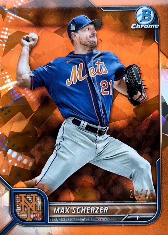 Max Scherzer 2022 Bowman Chrome Sapphire Edition Orange #62 New York Mets /75
