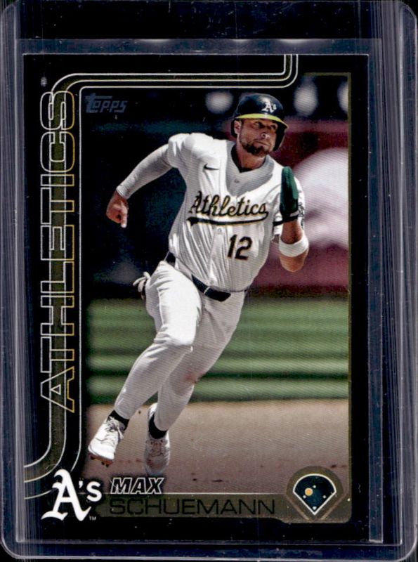 The Max Schuemann 2025 Topps #305 Black /74 card is 1 of 63 Max Schuemann's card variations in the 2025 Topps set being tracked by Sports Card Investor, including Base, Aqua Holo Foil, Diamante Foil, Holo Foil, and Pink Diamante Foil.