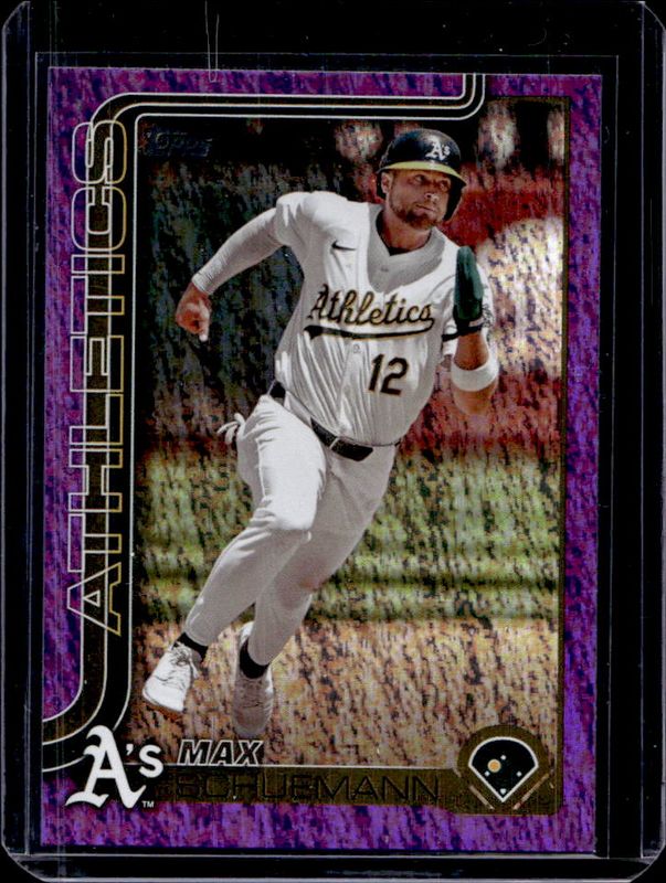 The Max Schuemann 2025 Topps #305 Purple Holo Foil /250 card is 1 of 63 Max Schuemann's card variations in the 2025 Topps set being tracked by Sports Card Investor, including Base, Aqua Holo Foil, Diamante Foil, Holo Foil, and Pink Diamante Foil.