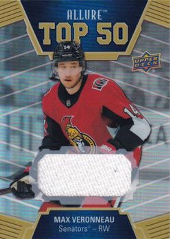 Max Veronneau 2019 Upper Deck Allure #T50-15 Top 50 Jersey Relics Rookie RAW Price Guide
