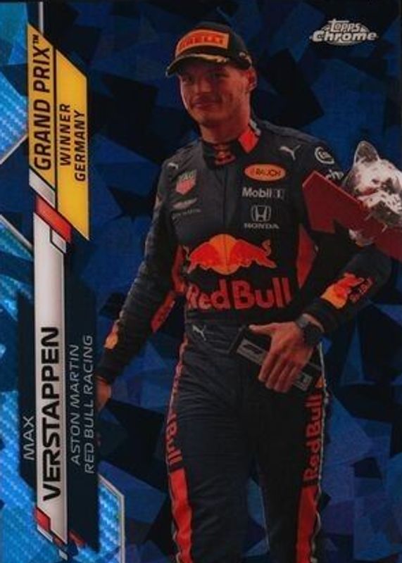 Max Verstappen's Racing cards are available in at least 18 sets. Max Verstappen's biggest 7-day price movers are 2020 Topps Chrome Formula 1 Sapphire Edition #143 Grand Prix Winners (Germany), 2020 Topps Chrome Formula 1 #179 F1 Racers - Refractor, and 2020 Topps Chrome Formula 1 #159 Grand Prix Driver of the Day - 70th Anniversary Gold Refractor (Monaco).