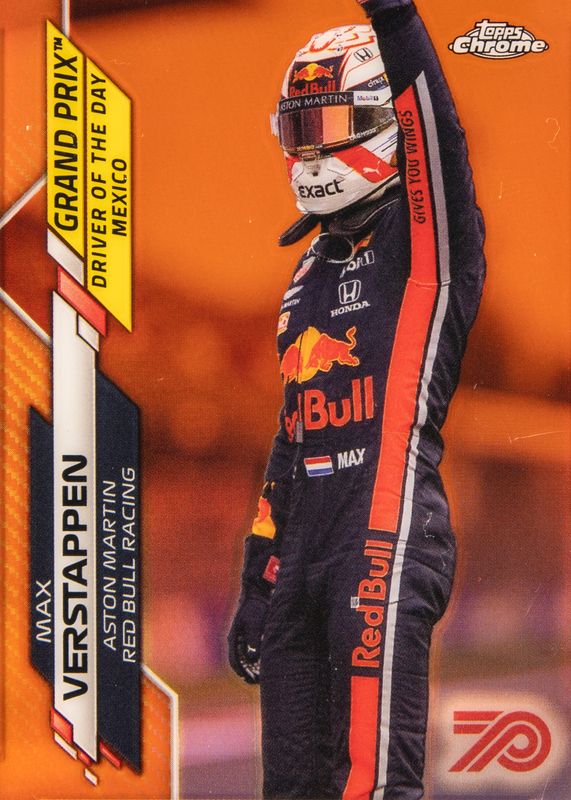 Best Prices Available For Sale of Max Verstappen 2020 Topps Chrome Formula 1 #171 Grand Prix Driver of the Day - 70th Anniversary Orange Refractor (Mexico)