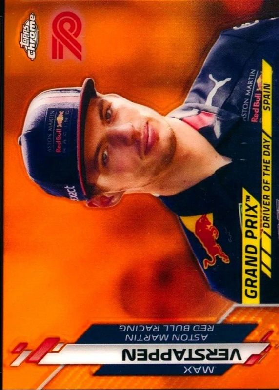 The Max Verstappen 2020 Topps Chrome Formula 1 #158 Grand Prix Driver of the Day - 70th Anniversary Orange Refractor (Spain) Rookie card in Raw condition has not changed in price in the last 30 days and was last sold for $44.99 .