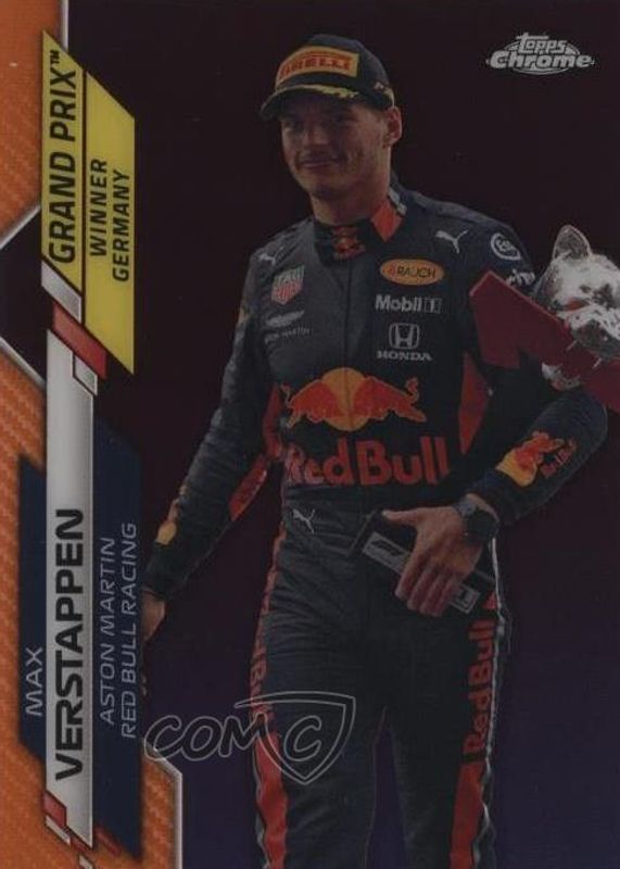 Recent Sales of Max Verstappen 2020 Topps Chrome Formula 1 #143 Grand Prix Winners - Orange Refractor /25 (Germany) Rookie Raw