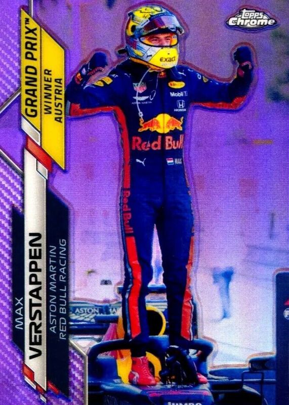 Best Prices Available For Sale of Max Verstappen 2020 Topps Chrome Formula 1 #141 Grand Prix Winners - Purple Refractor /399 (Austria)