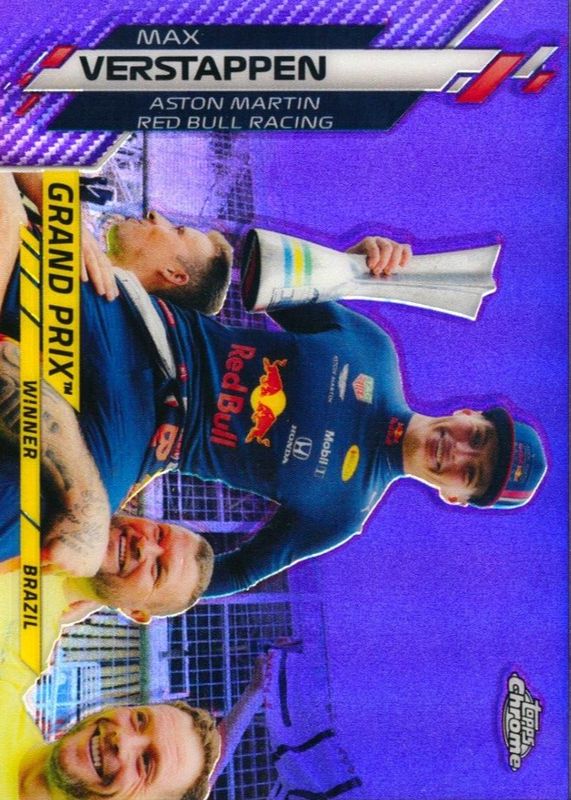 Best Prices Available For Sale of Max Verstappen 2020 Topps Chrome Formula 1 #152 Grand Prix Winners - Purple Refractor /399 (Brazil)