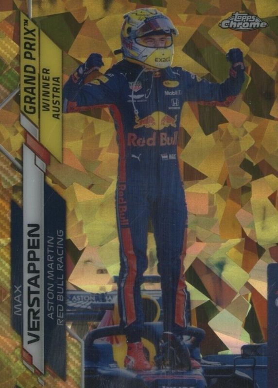 Best Prices Available For Sale of Max Verstappen 2020 Topps Chrome Formula 1 Sapphire Edition #141 Grand Prix Winners - Gold /50 (Austria)