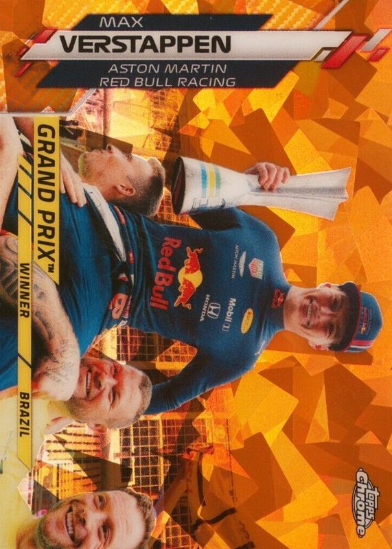 Best Prices Available For Sale of Max Verstappen 2020 Topps Chrome Formula 1 Sapphire Edition #152 Grand Prix Winners - Orange /25 (Brazil)