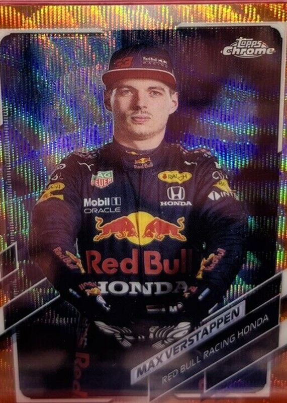 The Max Verstappen 2021 Topps Chrome Formula 1 #3 Orange Wave Refractor /25 card in Raw condition has not changed in price in the last 30 days and was last sold for $178.38 .