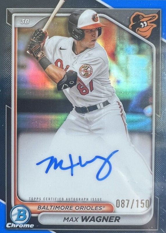 MAX WAGNER 2024 BOWMAN CHROME PROSPECT AUTO BLUE REFRACTOR /150 #CPA-MW ORIOLES