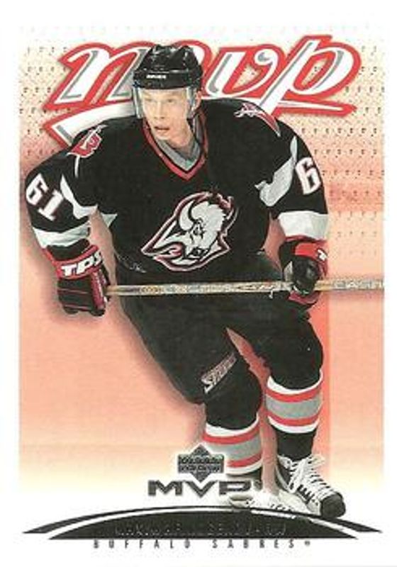 The Maxim Afinogenov 2003 Upper Deck MVP #60 Base card is 1 of 7 Maxim Afinogenov's card variations in the 2003 Upper Deck MVP set being tracked by Sports Card Investor, including Silver Script /150, Gold Script /25, Red Script /25, MVP Souvenirs, and ProSign.