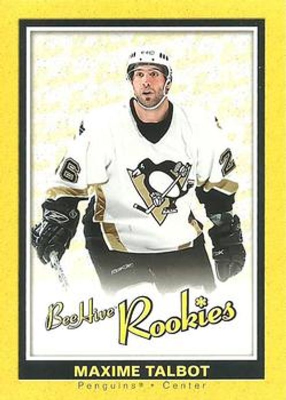 The Maxime Talbot 2005 Upper Deck Beehive #141 Base Rookie card is 1 of 6 Maxime Talbot's card variations in the 2005 Upper Deck Beehive set being tracked by Sports Card Investor, including Beige, Blue, Gold, Red, and Matte /25.