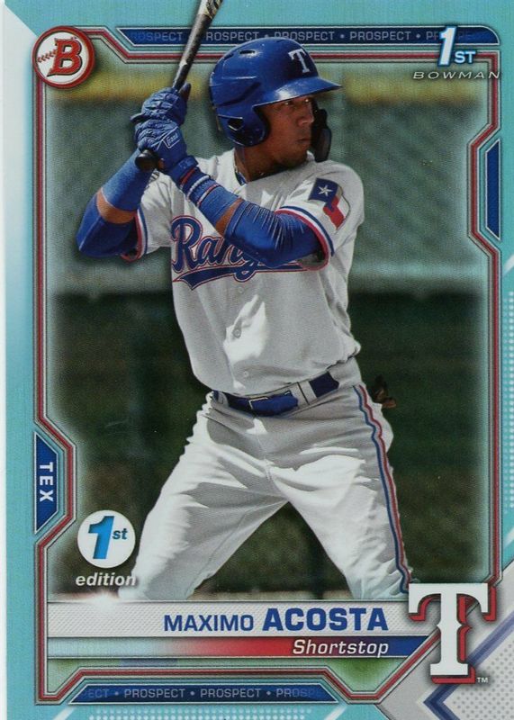 2021 Bowman 1st Edition MAXIMO ACOSTA Sky Blue Foil #BFE7 1st Bowman Rangers