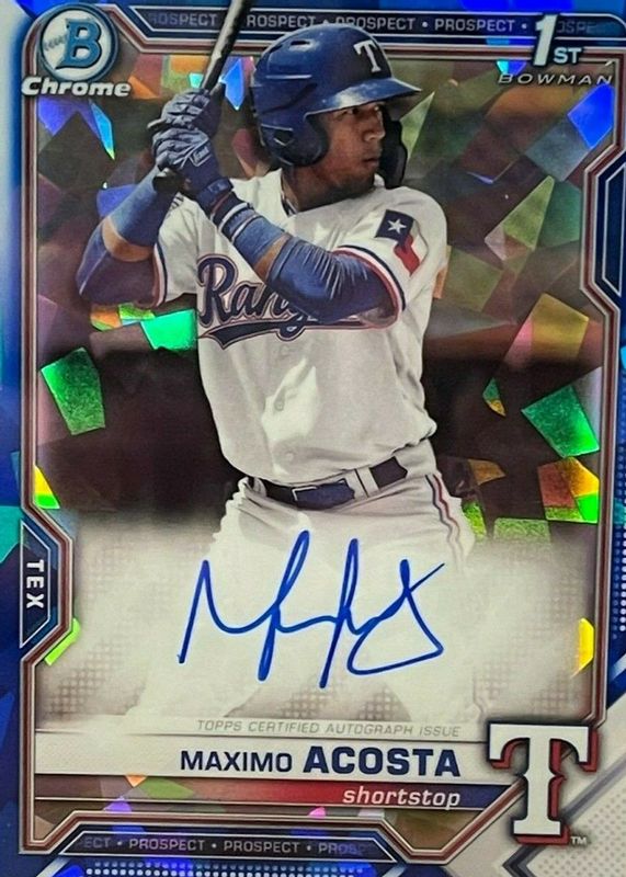 Maximo Acosta 2021 Bowman Sapphire Chrome Auto 1st #BSPA-MAC Rangers (AU, RC)