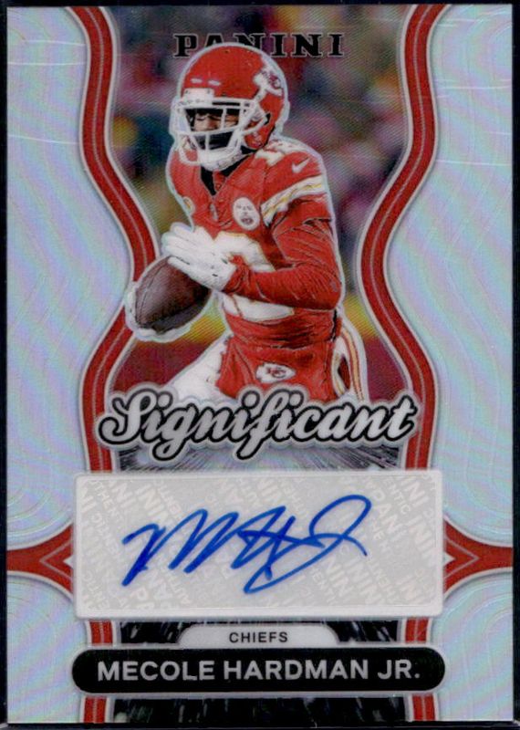 Mecole Hardman Jr.'s Football cards are available in at least 26 sets. Mecole Hardman Jr.'s biggest 7-day price movers are 2024 Prizm #SS-MHJ Significant Signatures, 2019 Origins #RP-22 Rookie Patches - Turquoise /25, and 2019 Origins #RA-MH Rookie Autographs.