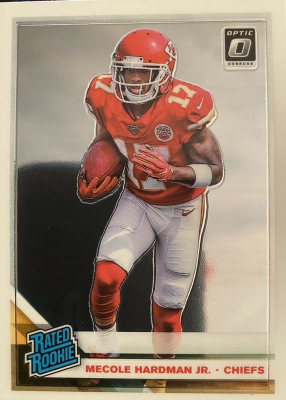 The Mecole Hardman Jr. 2019 Optic #175 Base Rookie card in Raw condition has not changed in price in the last 30 days and was last sold for $2.49 .