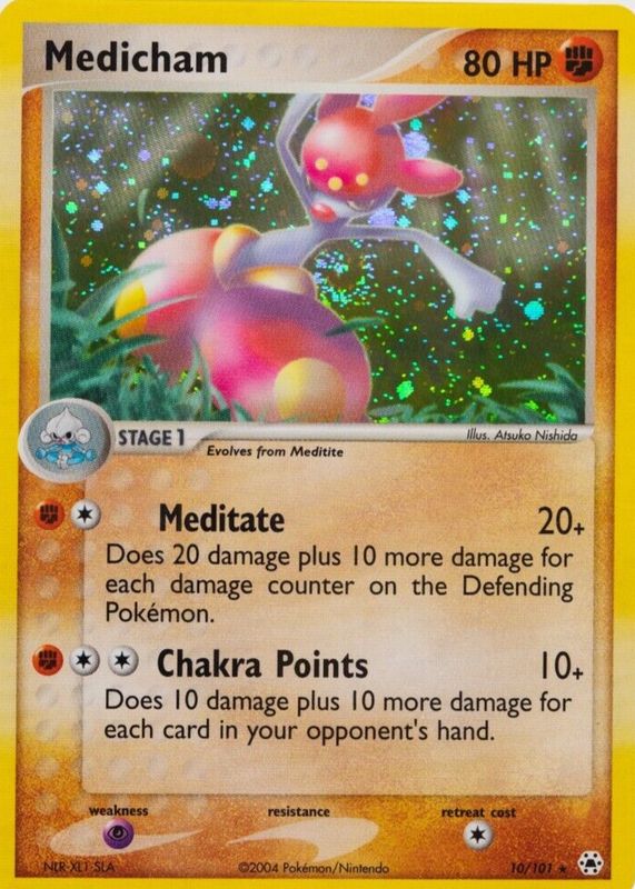 The Medicham 2004 EX: Hidden Legends #010/101 Holo card in Raw TCG (Near Mint) condition has moved up $1.73 (+13.0%) in the last 30 days and was last sold for $14.99 .