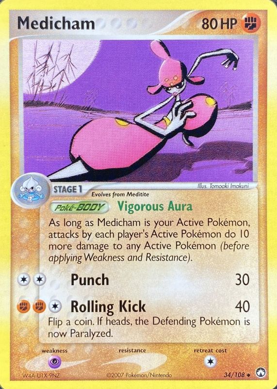 The Medicham 2007 EX: Power Keepers #034/108 Base card in Raw TCG (Lightly Played) condition has not changed in price in the last 30 days and was last sold for $2.84 .