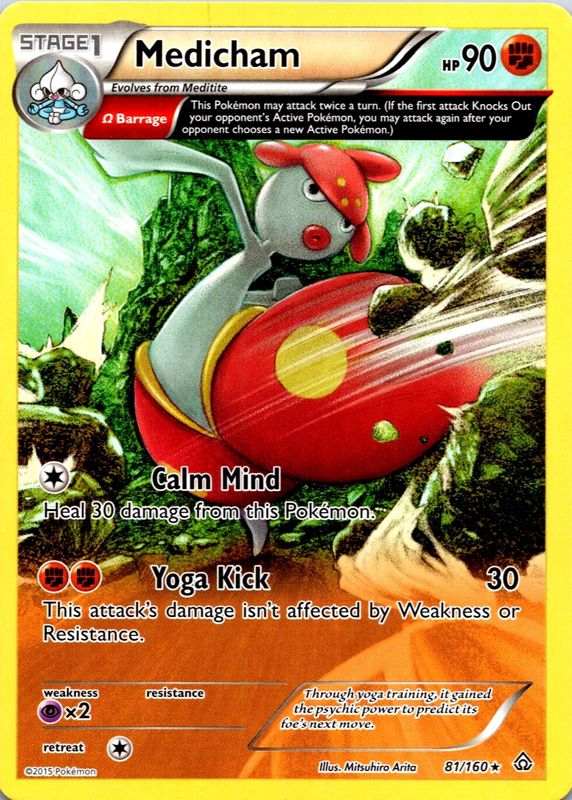 The Medicham 2015 XY: Primal Clash #081/160 Base card in Raw TCG (Lightly Played) condition has moved up $0.26 (+17.3%) in the last 30 days and was last sold for $1.76 .