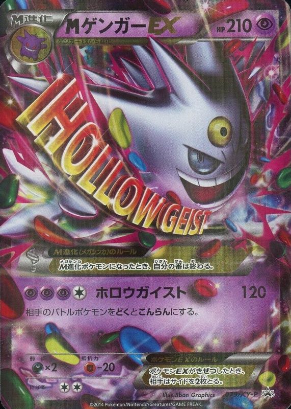 The Mega Gengar ex 2014 Japanese XY-P Promo #079/XY-P Pokemon Center Promo card in Raw TCG (Moderately Played) condition has not changed in price in the last 30 days and was last sold for $70.00 .