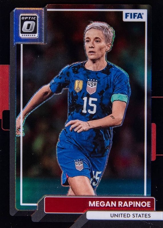 This card is 1 of 25 Megan Rapinoe's card variations in the 2022 Donruss set being tracked by Sports Card Investor, including Base, Green, Optic, Optic - Green Ice, and Optic - Holo.