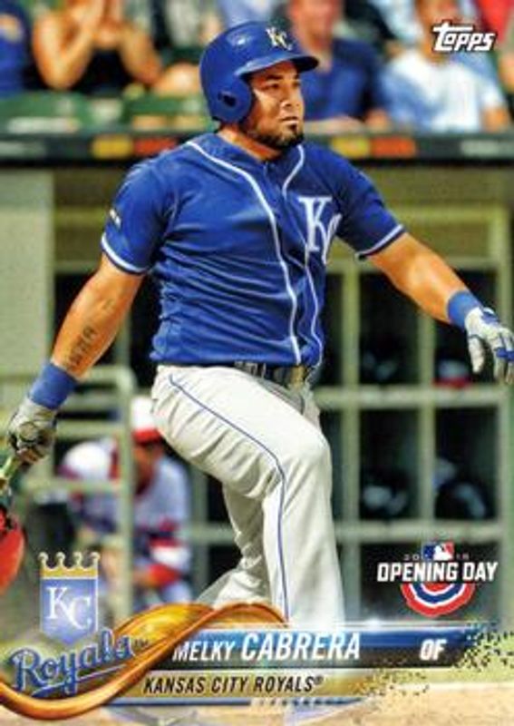 The Melky Cabrera 2018 Topps Opening Day #155 Base card is 1 of 10 Melky Cabrera's card variations in the 2018 Topps Opening Day set being tracked by Sports Card Investor, including Opening Day Edition Blue Foil, Purple, 5x7 /49, 5x7 Gold /10, and Opening Day 1 of 1 /1.