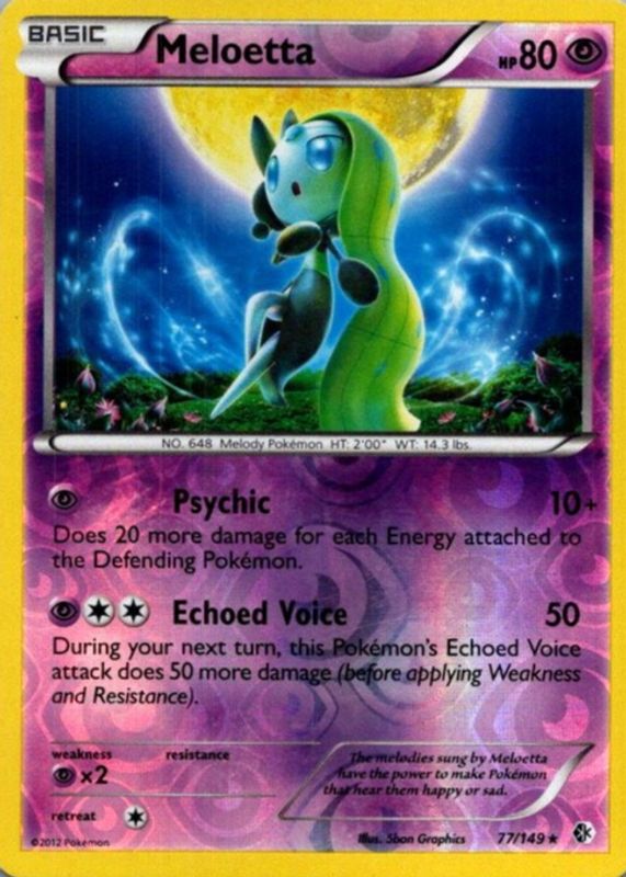 Meloetta 2012 Black & White: Boundaries Crossed #077/149 Reverse Holo RAW TCG (LIGHTLY PLAYED) Price Guide