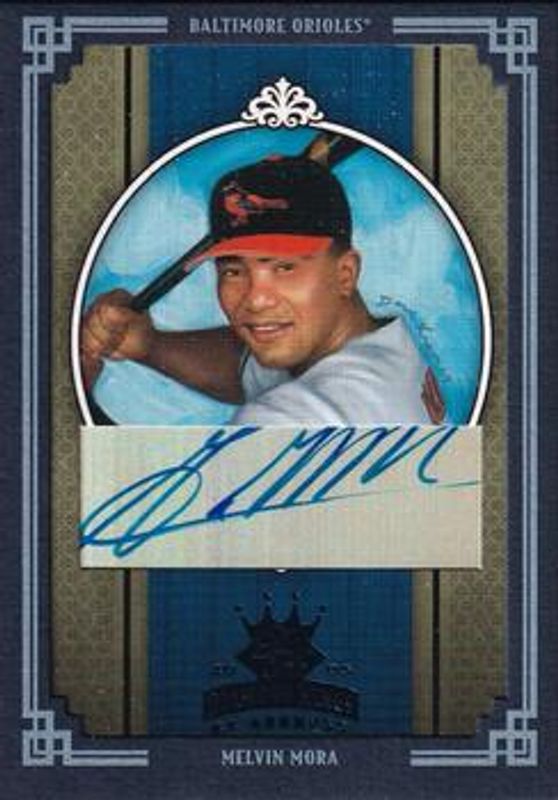 The Melvin Mora 2005 Diamond Kings #34 Signatures - Framed Blue /1 card is 1 of 120 Melvin Mora's card variations in the 2005 Diamond Kings set being tracked by Sports Card Investor, including #320 Base, #34 Base, #320 Framed Red, #34 Framed Red, and #320 Non Canvas.