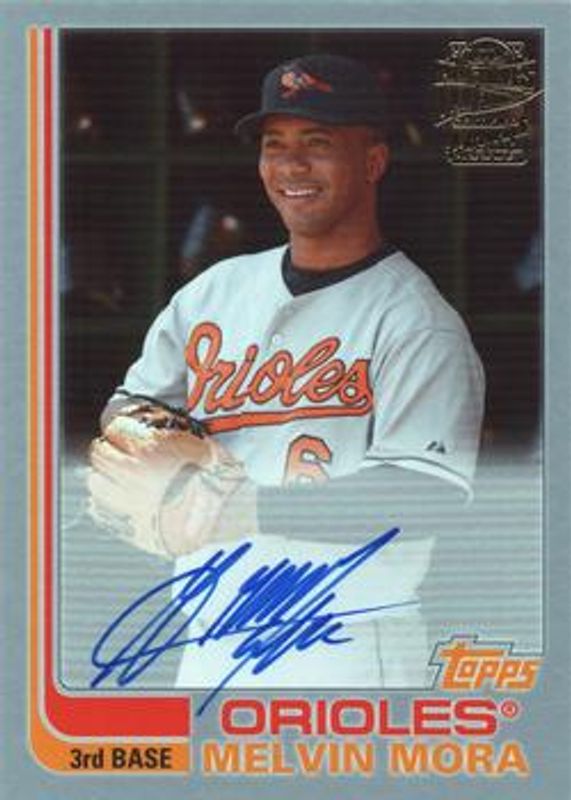 The Melvin Mora 2021 Topps Archives #FFA-MM Fan Favorites Autographs - Silver /99 card is 1 of 5 Melvin Mora's card variations in the 2021 Topps Archives set being tracked by Sports Card Investor, including Fan Favorites Autographs, Fan Favorites Autographs - Purple /150, Fan Favorites Autographs - Blue /25, and Fan Favorites Autographs - Gold /1.