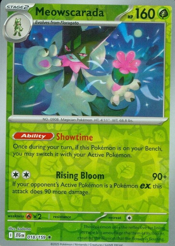Meowscarada 2025 Scarlet & Violet: Journey Together #018/159 Reverse Holo RAW TCG (LIGHTLY PLAYED) Price Guide