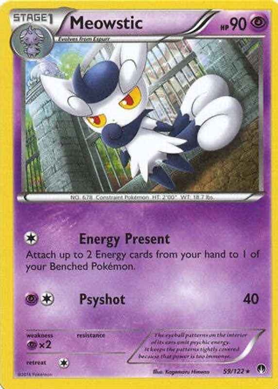 The Meowstic 2016 XY: BREAKpoint #059/122 Base card in Raw TCG (Near Mint) condition has not changed in price in the last 30 days and was last sold for $0.99 .