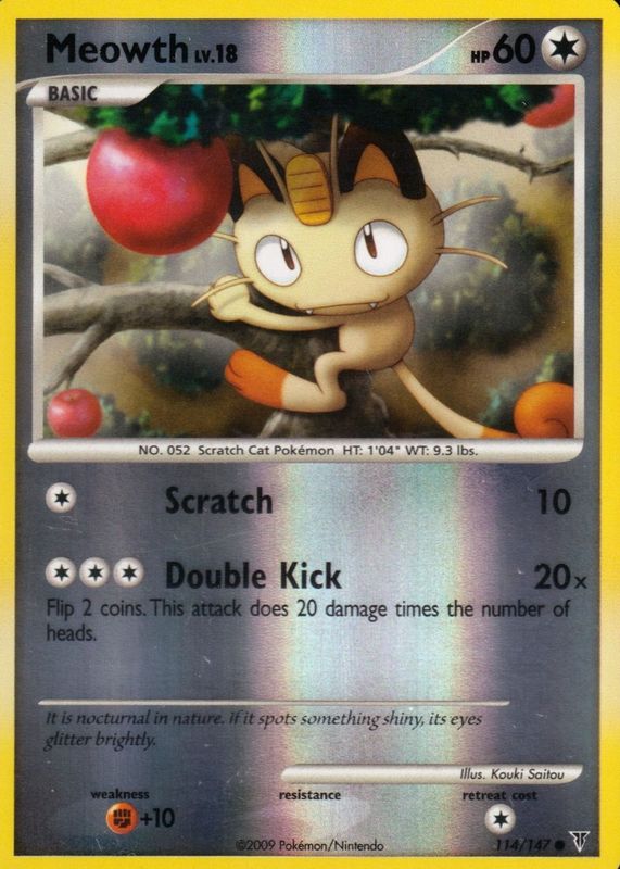 Meowth 2009 Platinum: Supreme Victors #114/147 Reverse Holo RAW TCG (LIGHTLY PLAYED) Price Guide